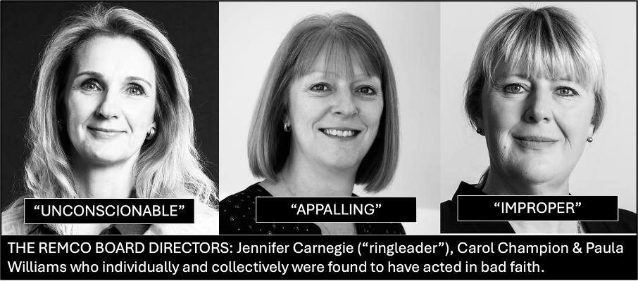 For absolutely no reason, other than perhaps that “my face didn’t fit”, I was punished time and time again. First, by being targeted to the point where my health completely collapsed; and second, by being unfairly dismissed after I had been forced to take sick leave because of work‑related stress. I will describe how the board sub‑committee of Jennifer Carnegie (whom the Court described as the “ringleader”), Paula Williams and Carol Champion continued to victimise me and push impatiently for my exit while I was off sick. Their actions – cutting off my email access, denying me adequate medical and HR support, breaching my data protection rights and utterly failing to undertake any due process while seeking my urgent removal and replacement by Ms Williams, their own conflicted and ill‑qualified candidate – are so shocking that readers may find them difficult to believe.